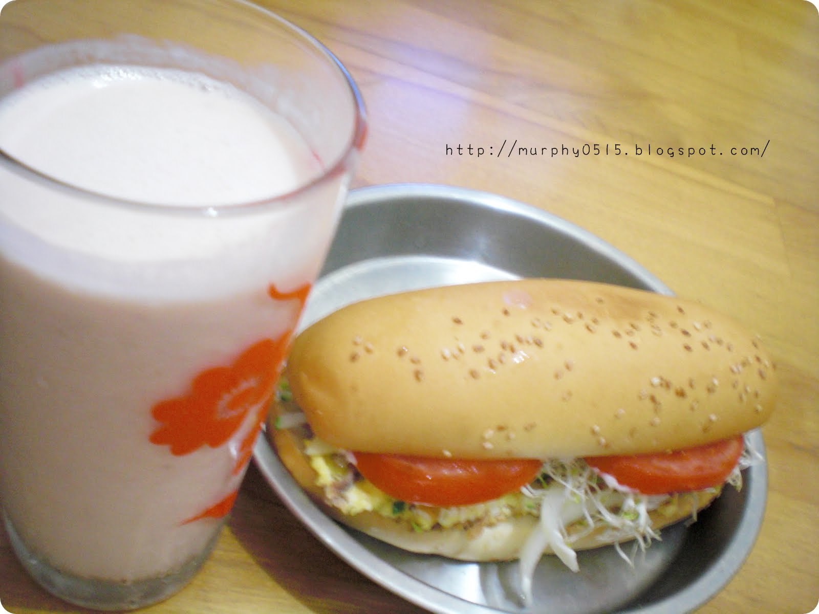 是"草莓優酪乳+蔬菜鮪魚蛋熱狗堡"